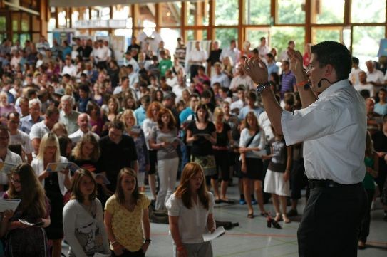 Nach dem WarmUp ging es direkt weiter mit der ersten von insgesamt vier halbstündigen Gesangproben, in denen die Lieder geübt wurden, die am Nachmittag im Gottesdienst von allen gemeinsam gesungen werden sollten.