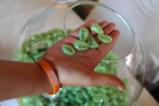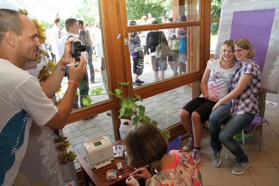 Die Pinnwand zum „Weinstock“ war als Fotocollage aufgebaut, bei der jedes Foto eine Traube darstellte. Die Anzahl der Trauben wuchs während des Tages beträchtlich, da jeder sich fotografieren lassen konnte und das Foto - ausgedruckt und rund ausgeschnitten – zu den anderen Trauben dazu geklebt wurde. Auf diese Weise wurde man selbst ein Teil des Weinstocks. |