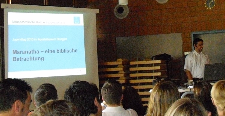 Priester Marcel Dagenbach, der als theologischer Referent in der NAK Süddeutschland arbeitet, hielt einen Vortrag, in dem er das Motto des Jugendtages näher erläuterte. Zu Beginn machte er bereits klar, dass dieser Gruß in der Bibel tatsächlich nur zweimal vorkommt nämlich in 1. Kor 16, 22 und am Ende der Offenbarung, wobei es da auch nur auf Griechisch steht. |
