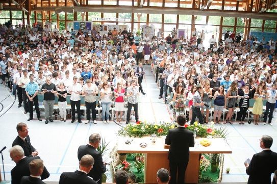 Nach den schönen Vormittagsstunden erlebten 1300 Teilnehmer um 15 Uhr als Höhepunkt und krönenden Abschluss des diesjährigen Jugendtages den Gottesdienst mit Apostel Loy